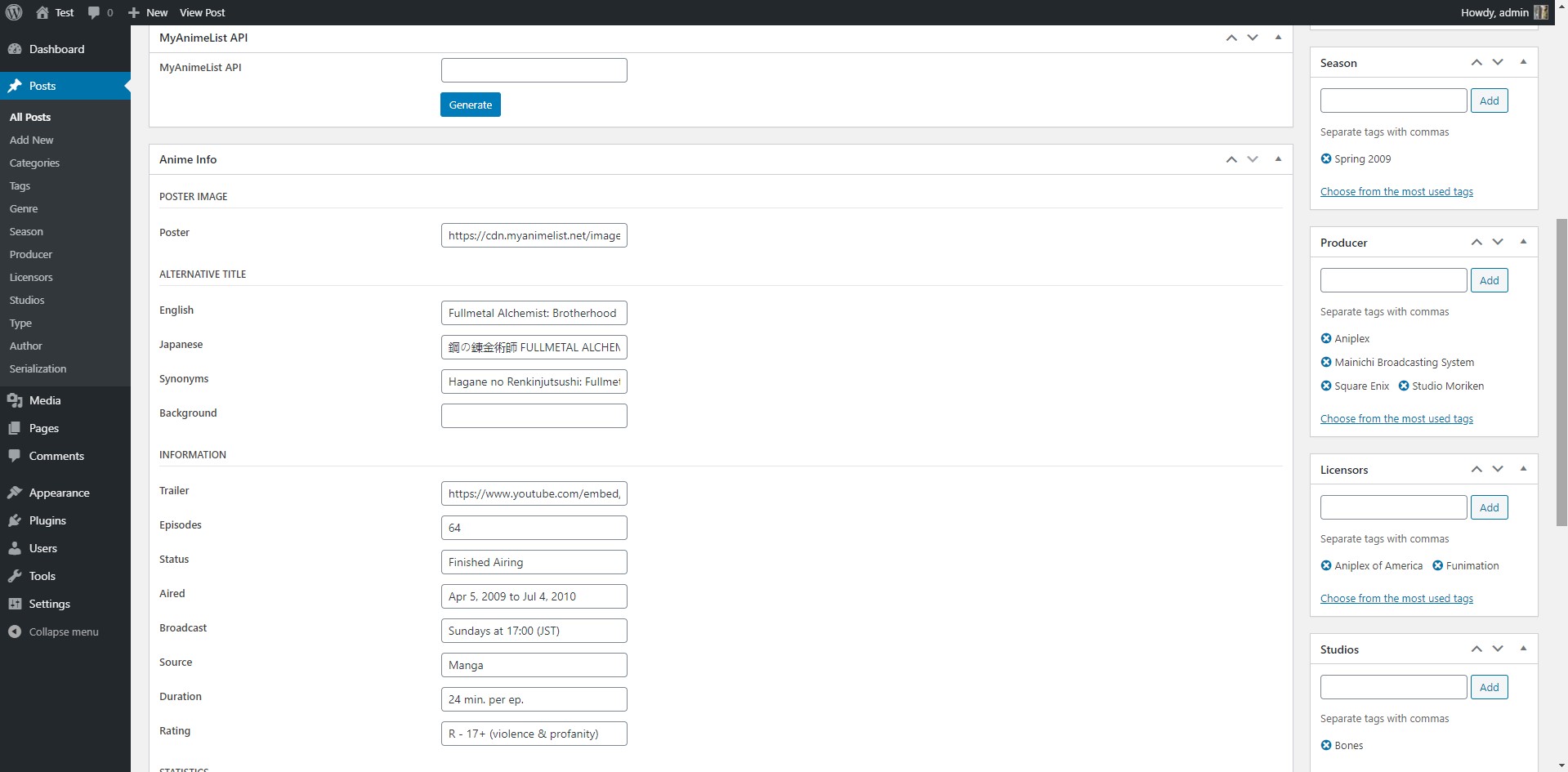 .api for the most active online anime + manga community and database — myanimelist.net. Animefreak is a custom api that provides data from the `animefreak.tv` website. Recommendation data from 76,000 users at myanimelist.net.